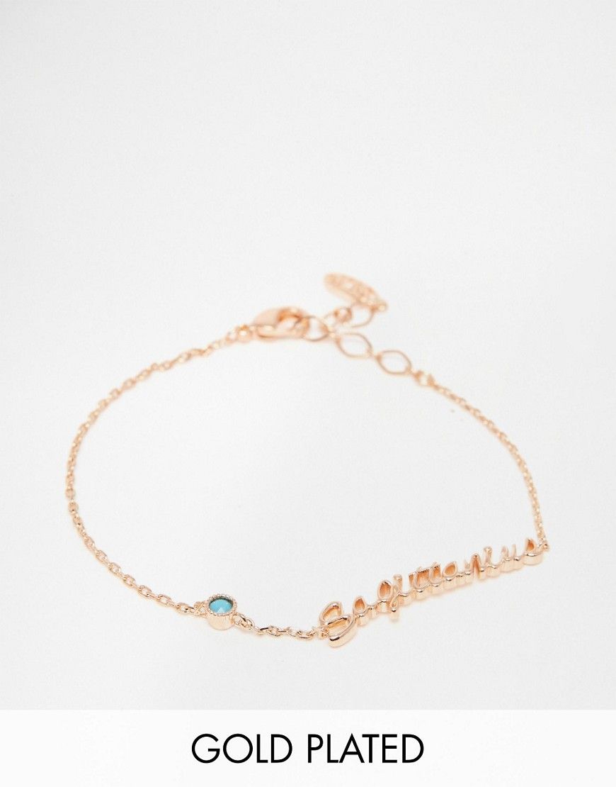 Bracelet par Astrid & Miyu, Plaqué or, Chaîne fine, Lettres signe du zodiaque, Ornements en pierres, Chaîne ajustable, Fermoir mousqueton, 80% laiton, 20% zircon cubique.