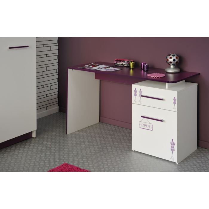 • BEAUTY Bureau décor blanc et prune L121 cm