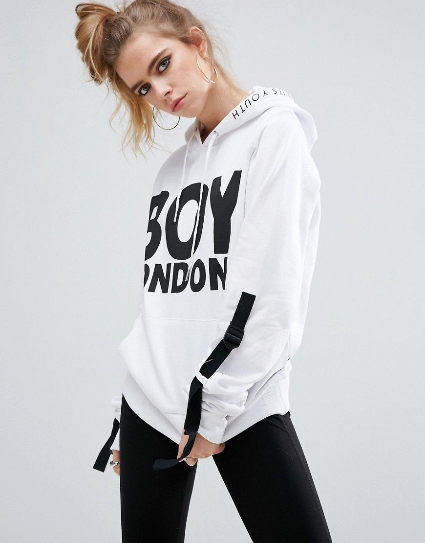 • Boy London - Sweat à capuche avec sangle sur la manche - Blanc