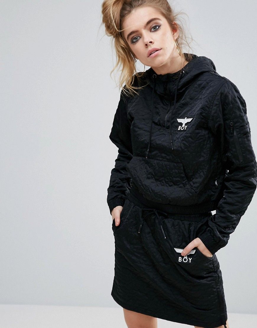 "Top par BOY London, Article fabriqué en tissu matelassé surpiqué, Capuche à cordon de serrage, Poche kangourou, Poche zippée sur la manche, Coupe classique taillant normalement, Lavage en machine, 100% nylon, Le mannequin porte l'article en taille UK 8 / EU 36 / US 4 et mesure 170 cm (5'7"). À PROPOS DE BOY LONDON Fondée en 1977, BOY London et son style caractéristique ont été adoptés par la culture underground, pour devenir la tenue de choix des mouvements jeunes qui comptent. Grâce au bouche-à-oreille et à une passion sans complexes pour la marque, BOY London a connu en 2007 une renaissance avec ses modèles originaux et uniques incluant t-shirts imprimés, leggings et débardeurs classiques, qui étaient chaque semaine en rupture de stock et ont introduit la marque auprès d'une nouvelle génération de fans."