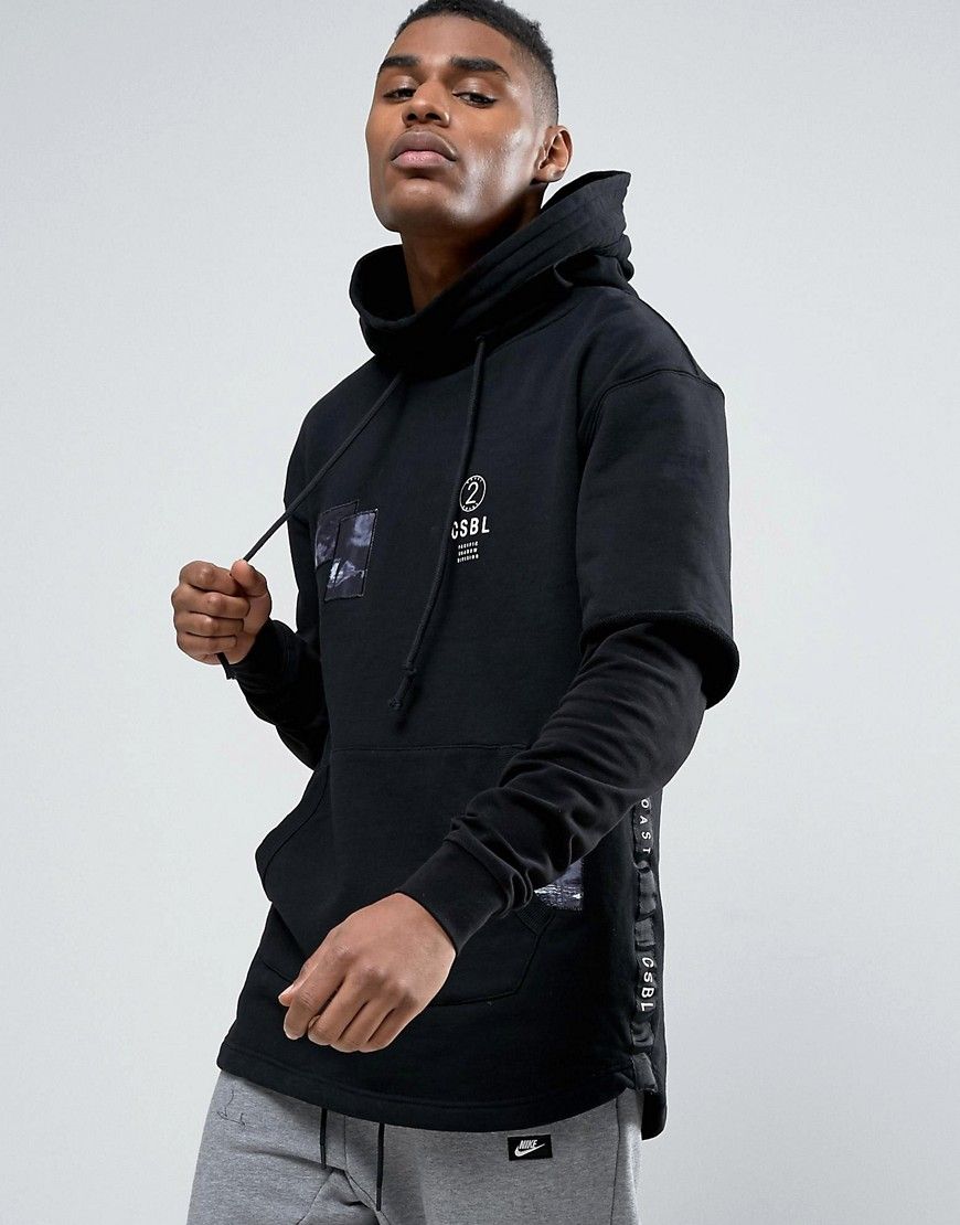 • Cayler & Sons - Sweat à capuche effet superposé avec empiècement graphique dans le dos - Bleu
