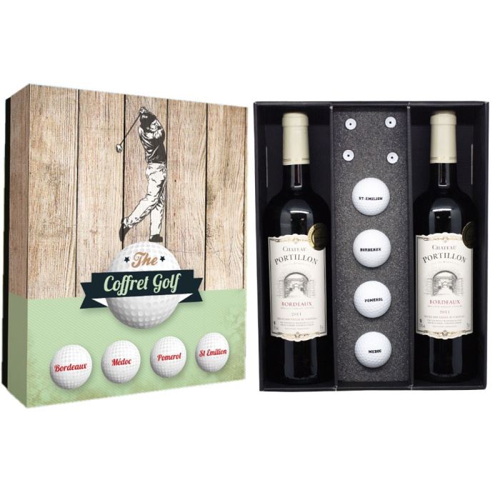 Buy Coffret Golf 4 balles + tee + 2 btles de Bordeaux, CLASS WINE on Pickture, in trends like Coffret, tee, Bordeaux