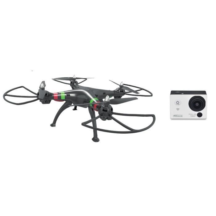Drone avec caméra intégrée Full HD - Autonomie : 15 min - Ecran 2" - Fonction Photo-Vidéo - 4 moteurs brushed - Gyroscope 6 axes - 3 vitesses sélectionnables - Vitesse maximum: 12,5 m/s - Autonomie en vol: 13 ? 15 minutes - Fonction Flip 3D 360° - Eclairage en vol par Led clignotantes + Caméra Full HD