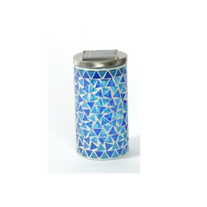 GALIX Décoration solaire BLEU - Décoration lumineuse cylindrique a énergie solaire, diffuseur en verre avec effet mosaique - BLEU