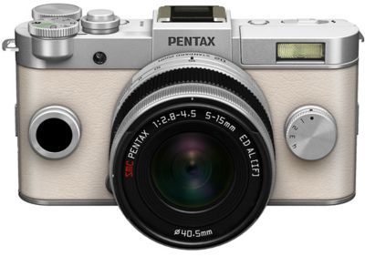 • Appareil photo hybride PENTAX Q-S1 Silver/Crème + 5-15 mm + Sac Ă  dos ESSENTIELB noir pour reflex + Carte SD ESSENTIELB SDHC 16Go Classe 10