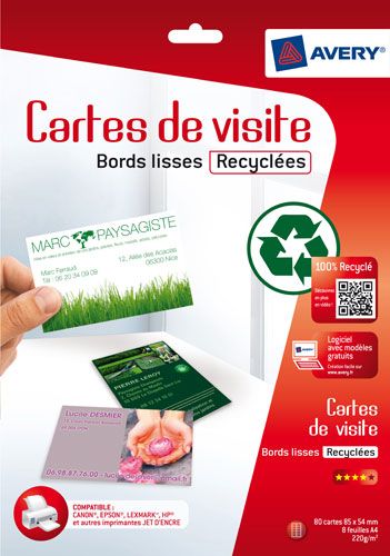 • Avery Pochette de 80 Cartes de visite en papier recyclé