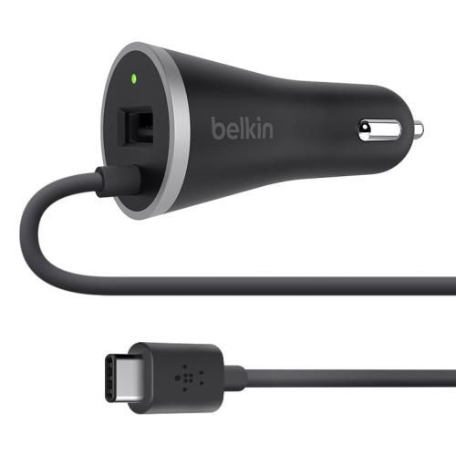 Belkin - Chargeur allume-cigare avec câble USB-C 2.0 et port USB-A