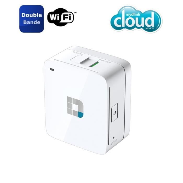 D-Link Répéteur nomade multifonction WiFi AC600 DIR-518L - Réseau local sans fil 802.11 a/b/g/n/ac, jusqu'a 600 Mbits/s2 - Port Ethernet WAN 10/100 - Mode Routeur haut débit - Mode Routeur mobile - Mode Point d'acces Wi-Fi - Appli mydlink(TM) SharePort(TM) - Interface Web conviviale avec interfaces fixe et mobile - Qualité de service (QoS) -Port USB 2.0 Type A (1 A) pour clés 3G compatibles, lecteurs USB