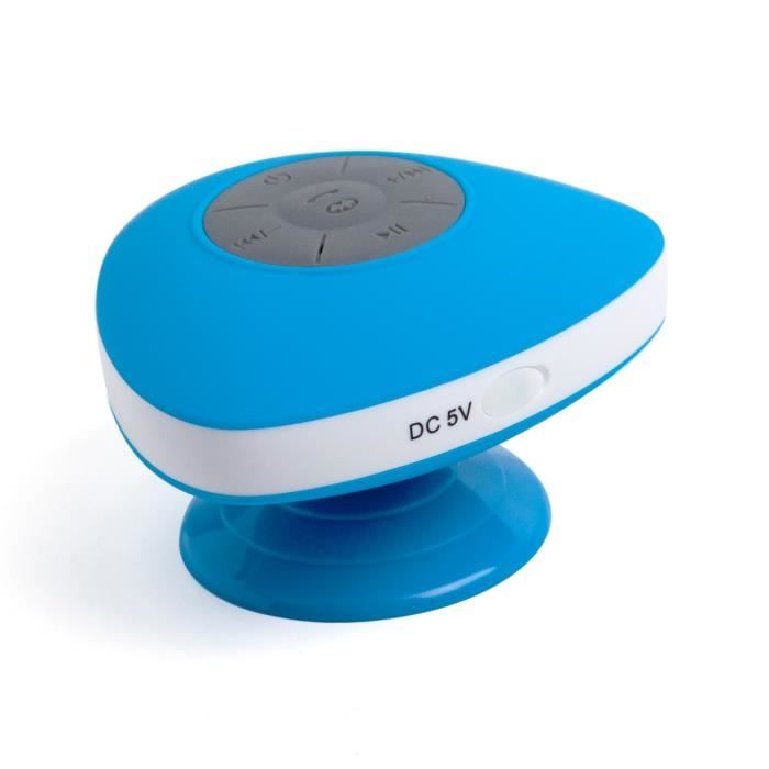 Enceinte Ventouse Splashproof Bluetooth 3.0 - Puissance: 3W - Mains-libres - Autonomie: 3-4h - Poids: 127g - Boutons physiques vol.+ et vol.- - Splash proof IP 54 - Couleur : Bleu