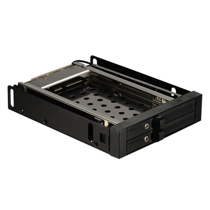 Rack sécurisé pour 2 disques durs 2.5" dans baie 3.5" - Compatible SSD/HDD 2.5" SATA I,II,III - Rack en acier - Clé de sécurité pour protéger vos données - 2 LEDs d'informations - Réf. EMK3201