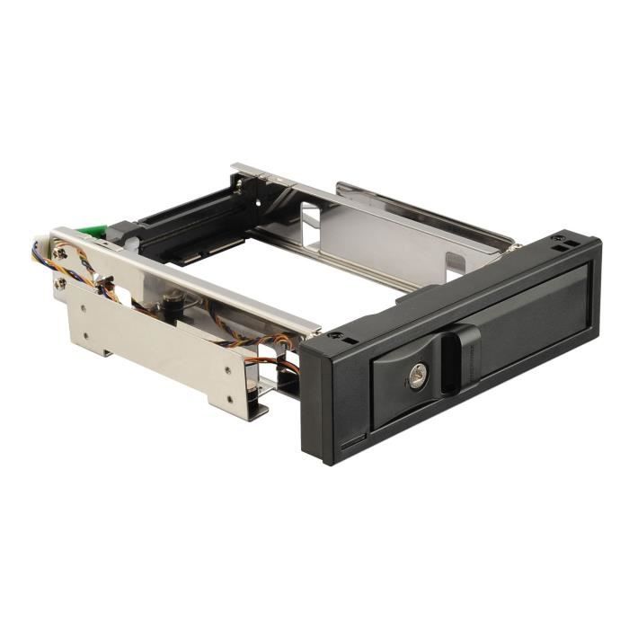 Rack sécurisé pour disque dur 3.5" dans baie 5.25" - Compatible HDD 3.5" SATA I,II,III & SAS - Rack en acier noir et plastique - Protection contre les vibrations et les chocs - Clé de sécurité pour protéger les données - 2 LEDs - Réf. EMK5101