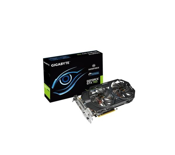 Carte graphique Nvidia GTX 760 - GPU cadencé a 1033MHz - GPU Boost 1098MHz - Mémoire 2Go GDDR5, interface 256bit - PCI Express 3.0 - DisplayPort / HDMI / DVI-I / DVI-D / HDCP -Compatible HDPC - Dissipateur Windforce 2X - Réf. GV-N760WF2OC-2GD