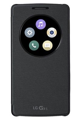 HOUSSE FOLIO QUICK CIRCLE (NOIR) POUR LG G3 S : Protégez votre LG G3 S avec style avec la protection officielle spécialement conçue pour votre smartphone Utilisez votre G3 S en protégeant son écran. Personnalisez l'horloge et les 5 applications que vous souhaitez utiliser directement dans la "Circle Window" lorsque la housse est fermée.