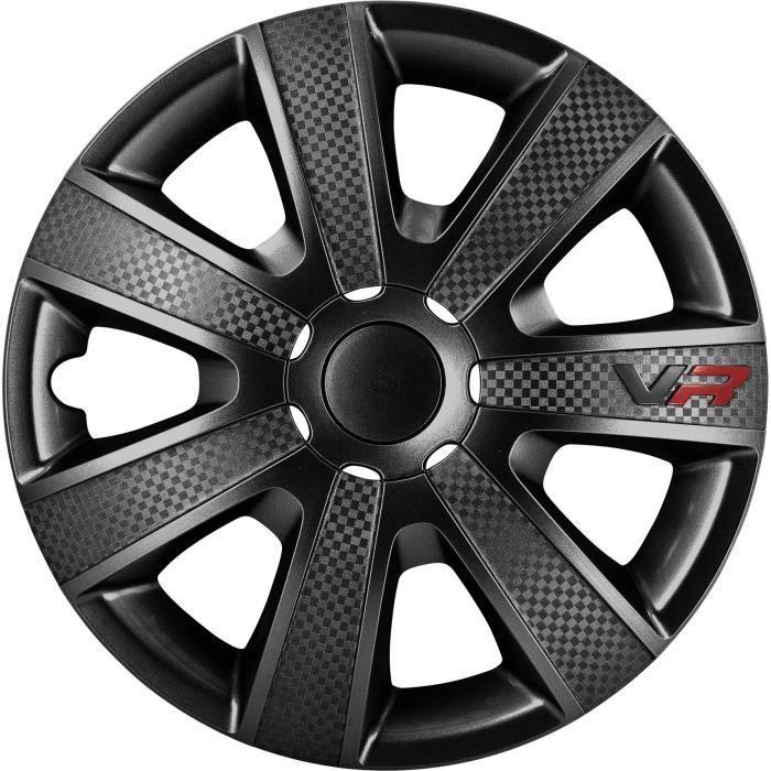 Jeu de 4 enjoliveurs vr 15'' noir look carbone + logo