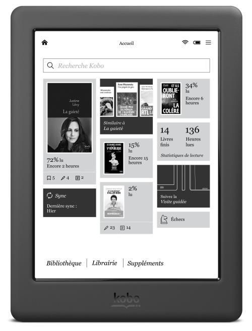 Ecran tactile E-Ink Pearl 6 , Technologie Comfortlight Capacité de stockage : 3000 livres