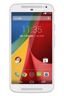 Un écran HD 5" éblouissant! Ce que vous remarquerez d’abord chez le nouveau Moto G de Motorola, c’est l’impressionnante précision de son écran HD qui s’étire aux quatre coins du téléphone. Lisez, naviguez et visionnez vos contenus sur un superbe écran au format extra large, pour des images à couper le souffle. Bénéficiez des dernières caractéristiques technologiques telles que Android 4.4.4 Kit Kat, processeur Quad-Core, appareil photo 8 mégapixels et bien d'autres encore. Processeur Quad-Core 1,2 GHz ultra-rapide : Grâce au processeur, vous profitez d'une navigation fluide et ultra-rapide. La mémoire RAM de 1024Mo facilite la gestion de plusieurs applications en même temps, sans ralentissement. L'appareil photo est doté d'un capteur de 8 millions pixels vous garantissant des films et des photos de grande qualité, même par faible luminosité. Flash double LED, autofocus et bien d'autres fonctions avancées pour capturer tous vos plus beaux moments. Il dispose également d'une caméra frontale de 2 mégapixels pour passer vos appels en visiophonie ou prendre des selfies. L'interface ludique vous permettra d'accéder aux widgets embarqués tels que Twitter, Facebook, News, météo... et même d'en télécharger sur Google Play ! Appréciez toutes les applications Google, Gmail, Google Maps, You Tube embarqués sur votre téléphone. Lecteur et enregistreur vidéo HD (720p 30 fps) pour prendre ou visualiser des séquences animées. Lecteur MP3 : vous permet d'écouter vos morceaux musicaux préférés dans les transports ou tout simplement chez vous pour vous relaxer. Le nouveau Moto G est équipé de deux haut-parleurs avant pour que vous profitiez de votre musique et de vos videos avec un son stéréo intégral. Véritable bibliothèque multimédia, il est doté d'une prise audio jack 3.5 mm pour écouter vos vidéos et morceaux de musique avec vos propres écouteurs. Lorsque vous basculez votre téléphone pour passer du mode portrait au mode paysage, l'accéléromètre détecte ce mouvement et modifie l'affichage en conséquence. Antenne A-GPS intégré avec géolocalisation, géotagging et boussole intégrée. Idéal pour les piétons comme pour les conducteurs ! Technologie Wi-Fi b/g/n pour vous connecter sans fil à Internet depuis votre installation domestique, à partir d'un HotSpot ou alors sur le réseau sans fil d'un ami. Compatible Bluetooth 4.0 pour utiliser un kit piéton sans fil ou pour partager vos données rapidement La batterie longue durée de 2070 mAh du nouveau Moto G tient une journée entière sans être rechargée. Vous pouvez ainsi vous consacrer pleinement à vos tâches sans peenser au temps dont vous disposez pour les faire. Mémoire interne de 8 Go avec slot microSD pour un stockage de données important.
