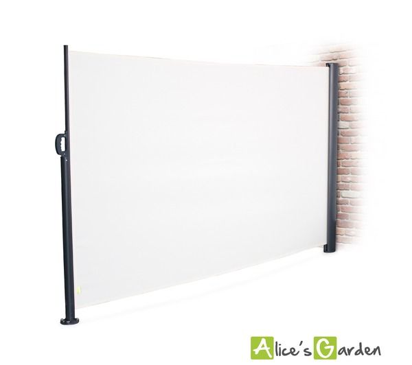 Paravent rĂ©tractable Putti 3m, hauteur 160cm avec toile polyester 280g et mĂąt aluminium Vous recherchez un moyen facile et efficace de crĂ©er une sĂ©paration, un brise-vue design et pratique ? Alice's Garden vous propose ce paravent rĂ©tractable d'une longueur de 3m max. Vous pouvez ajuster la longueur selon la largeur de votre terrasse, balcon ou selon vos envies. La toile s'enroule automatiquement afin d'ĂȘtre tendue en permanence, mais aussi d'ĂȘtre rangĂ©e toujours plus rapidement. Pour s'adapter Ă  toutes les configurations, nous incluons un poteau de fixation pour le sol en plus de la fixation murale, avec quincaillerie pour mur, carrelage ou dalle de bĂ©ton (Chevilles et vis) ou paroi et terrasse en bois (vis Ă  bois). Le support du poteau permet au poteau de maintien d'ĂȘtre amovible, afin de ne pas ĂȘtre un obstacle lorsque vous n'utilisez pas le paravent. La toile est en polyester, elle est dense (280g/m2), et est enduite d'un revĂȘtement dĂ©perlant, rendant le tissu rĂ©sistant aux intempĂ©ries, mais aussi aux dĂ©chirures. La structure de l'enrouleur, et du poteau sont en aluminium, afin de vous apporter lĂ©geretĂ© et longĂ©vitĂ©. Une poignĂ©e est prĂ©sente sur la partie dĂ©roulable, afin de tirer le paravent sans difficultĂ©s. Elle est pourvue d'une gĂąchette avec loquet, dans le but de maintenir le paravent au poteau. Une simple pression dĂ©sengagera la partie enroulable de son support vertical. Votre produit vous sera livrĂ© dĂ©ja montĂ©, seul le kit de fixation sera Ă  installer, Ă  l'aide de la notice de montage, en Français. Coloris structure : Anthracite Coloris toile : Ecru Les + produit : - Grande longueur de 3m, - Fixations mur + sol fournies, - Toile polyester 280g/m2 CaractĂ©ristiques techniques : MĂąt et poteau en aluminium Toile polyester 280g/m2 Kit de fixation sol inclus Kit de fixation mural inclus (Enrouleur et fixation entre deux parois) PoignĂ©e de fixation, avec loquet Poteau de fixation au sol avec socle, amovible Vis et chevilles incluses Dimensions produit : Paravent dĂ©ployĂ© max. : L300xH160cm DiamĂštre mĂąt : Ø50mm Poteau vertical amovible : L58xP35xmm Dimensions logistique : 1 colis : 166x13x20cm (10kgs) Information complĂ©mentaire : Ce produit est destinĂ© Ă  protĂ©ger de lĂ©gĂšres brises, crĂ©er de l'ombre et cacher la vue. Il ne peut pas ĂȘtre utilisĂ© de façon permanente, afin de ne pas risquer une prise au vent trop importante, qui pourrait endommager le produit. Il est prĂ©vu pour ĂȘtre installĂ© sur un sol dur (terrasse), ou bien entre deux parois (murs ou cloisons). Si vous souhaitez installer le poteau de soutien dans votre pelouse, il vous faudra alors sceller le support dans du bĂ©ton. La partie enrouleur du store vertical ne peut ĂȘtre fixĂ©e que sur un mur ou une paroi, elle ne peut pas ĂȘtre fixĂ©e au sol.Garantie 1 an