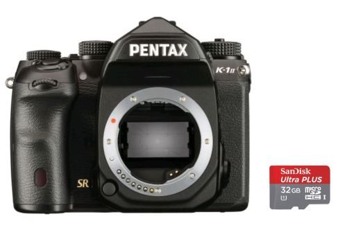 • Reflex Pentax K-1 II Boîtier nu Noir + Carte Mémoire Sandisk ultra PLUS MicroSDHC 32Go 80Mo/seconde UHS-I avec adaptateur SD