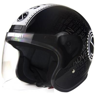 Casque moto scooter jet Sun Effect noir blanc - Ecran long - 1400 gr - Tissu hypo-allergénique - Ecran clair - Boucle micrométrique