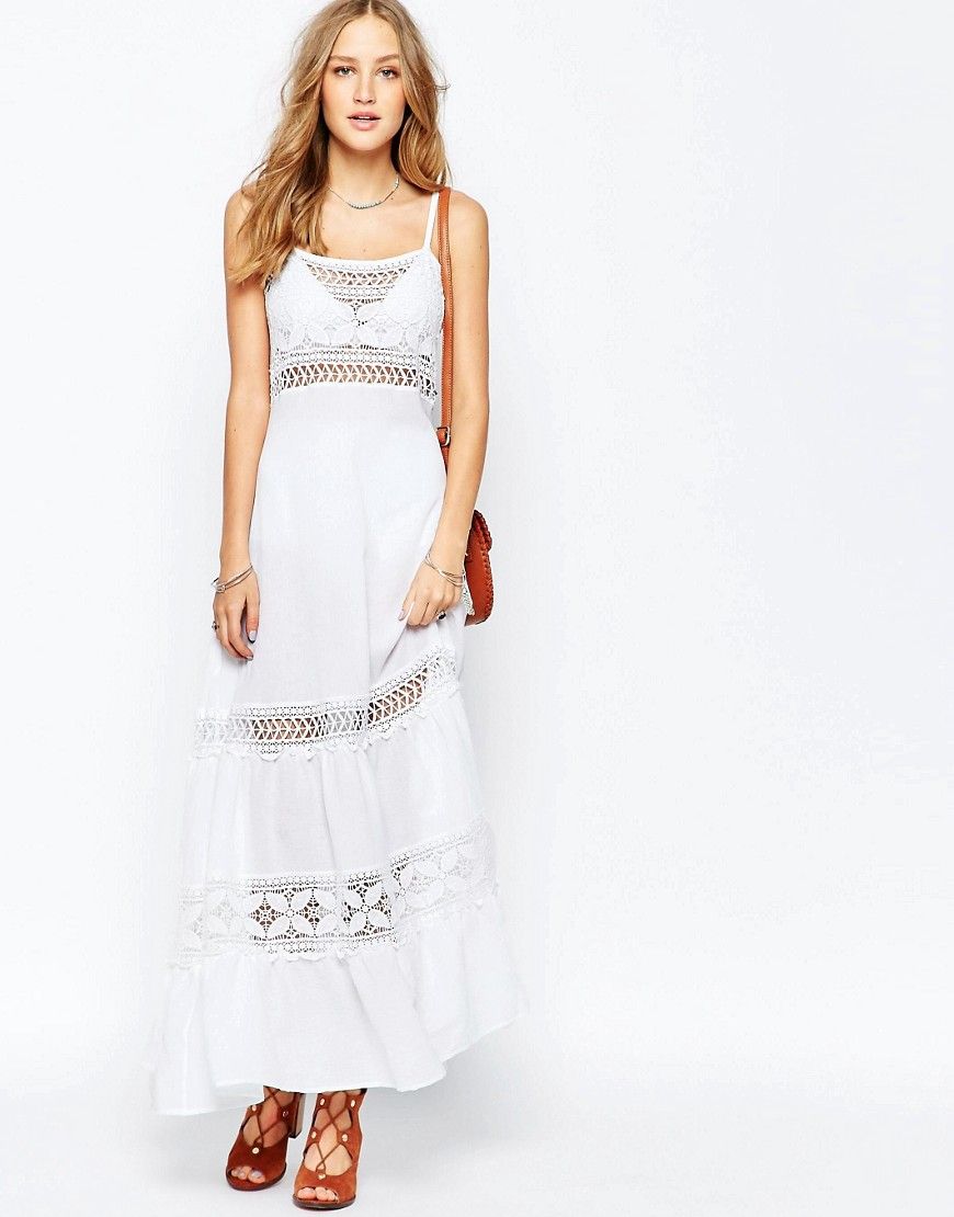 """Maxi robe par Gypsy 05, Gaze légère, Modèle sans doublure, Encolure dégagée, Bretelles ajustables, Empiècements en crochet, Coupe classique taillant normalement, Nettoyage à sec par un professionnel, 100% coton, Le mannequin mesure 176 cm (5'9,5"") et porte l'article en taille UK S / EU S / US XS."""