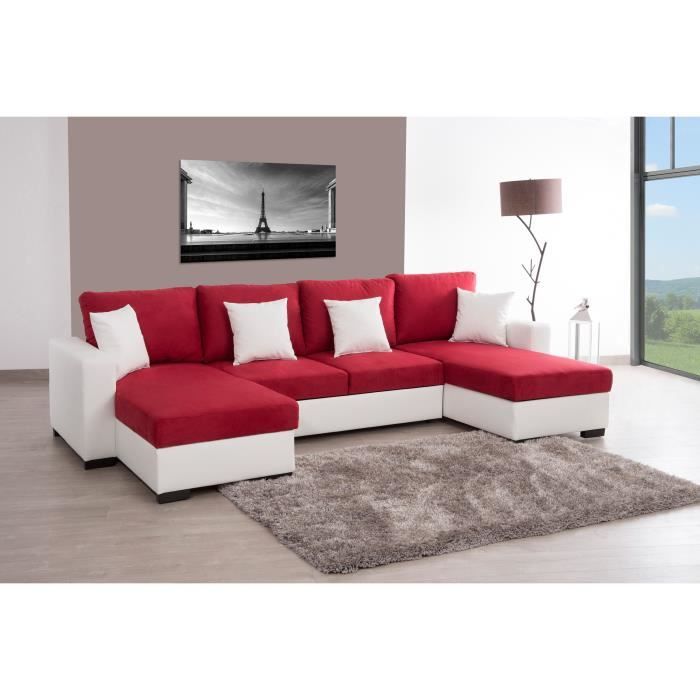 ALMA Canapé angle U convert PU blanc/micro rouge