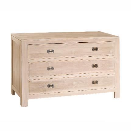 Commode 3 tiroirs en teck blanchi - Dimensions : 120 x 50 x 76 cm - Finition gomme laque - 3 tiroirs