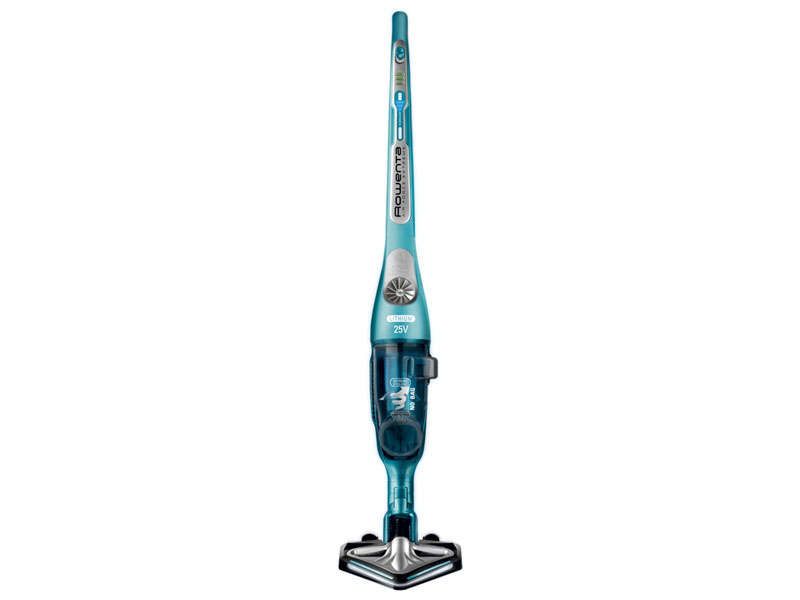 ASPIRATEUR BALAI AIR FORCE EXTREME LITHIUM 25V RH887101Aussi maniable et pratique qu'un balai, l'aspirateur sans fil Air Force Extrême Lithium offre en plus la performance d'un aspirateur classique.Grâce à une puissance élevée et une tête d'aspiration Delta Vision, il aspire en toute simplicité les moindres recoins. Sa batterie Lithium Ion lui permet de se recharger plus rapidement, de gagner en légèreté et de prolonger par deux sa durée de vie. LES PLUS PRODUIT :LA MEILLEURE PERFORMANCE DU MARCHÉLe seul aspirateur balai sans fil qui offre un résultat aussi performant qu'un aspirateur classique**.Pas de perte d'aspiration grâce à son systeme cyclonique ultra performant.Une puissance élevée de 25V pour une autonomie record de 55 mn.**Comparé à Rowenta Silence Force Extrême (Test de dépoussiérage sur sols lisses réalisé par un laboratoire indépendant).BATTERIE LITHUIM ION : QUE DES ATOUTSBatterie ultra longue durée (durée de vie x 2 vs batterie NiMh)Diminution du temps de charge (6h vs 10h batterie NiMh)Maniabilité renforcée grâce à son poids plus léger (Vs batterie NiMh)Indicateur du niveau de charge restantCONFORT EXTRÊMESa nouvelle tête d'aspiration Delta Vision offre une parfaite visibilité au sol grâce à un éclairage LED.Air Force Extrême Lithium tient debout tout seul.Pas besoin de base, il se recharge par simple prise jack.Entretien simplifié grâce à son système EASY CLEAN :> Bac à poussière amovible avec trappe> Electrobrosse amovible pour un nettoyage facile. CARACTERISTIQUES :Rechargeable : Sans filPuissance (Volts) : 25.2 VAutonomie (min) : 55Capacité utile (L) : 0,5Type de batteries & nombre : Lithium Ion / 7Nombre de vitesses : 3 dont turboTête d'aspiration : Delta Vision 'All Floors'Electrobrosse : amovibleFiltration : Filtre Mousse lavableRechargement : Prise JackTémoin de chargeTemps de charge (heures) : 6 hPosition parking intégréeBac à poussière amovibleInterrupteur Marche/ArretColoris : Bleu LagonAutres : Eclairage autour de la tête par LEDTechnologie sans sac : CycloniqueDIMENSIONS (LxPxH en cm) : 25X25.5X119POIDS (kg) : 3,39
