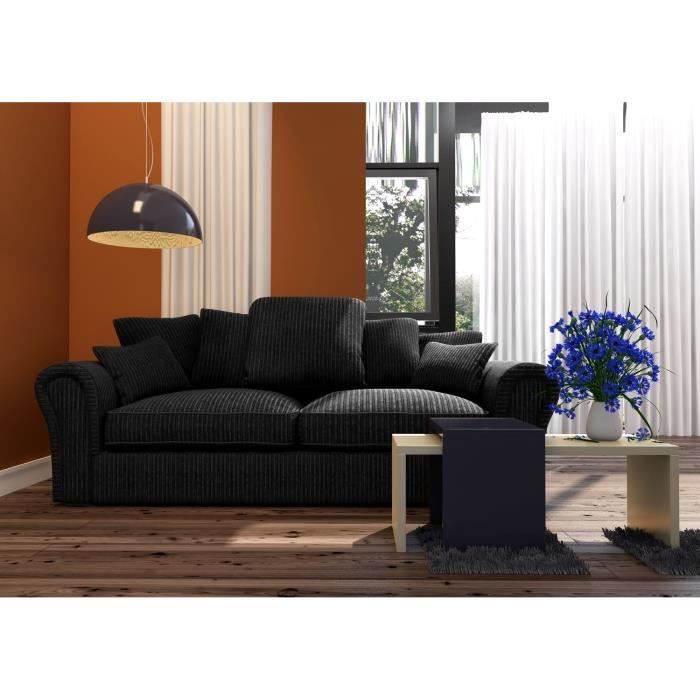 • BARCELONA CanapĂ© 3 places - 215x84x96 cm - Tissu - Noir