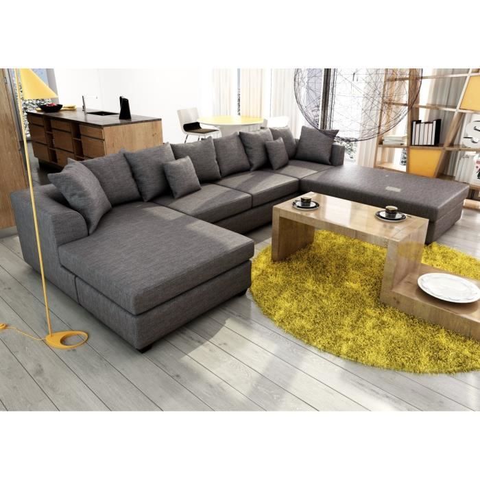 • BELFAST CanapĂ© convertible lit angle panoramique 4 places tissu gris