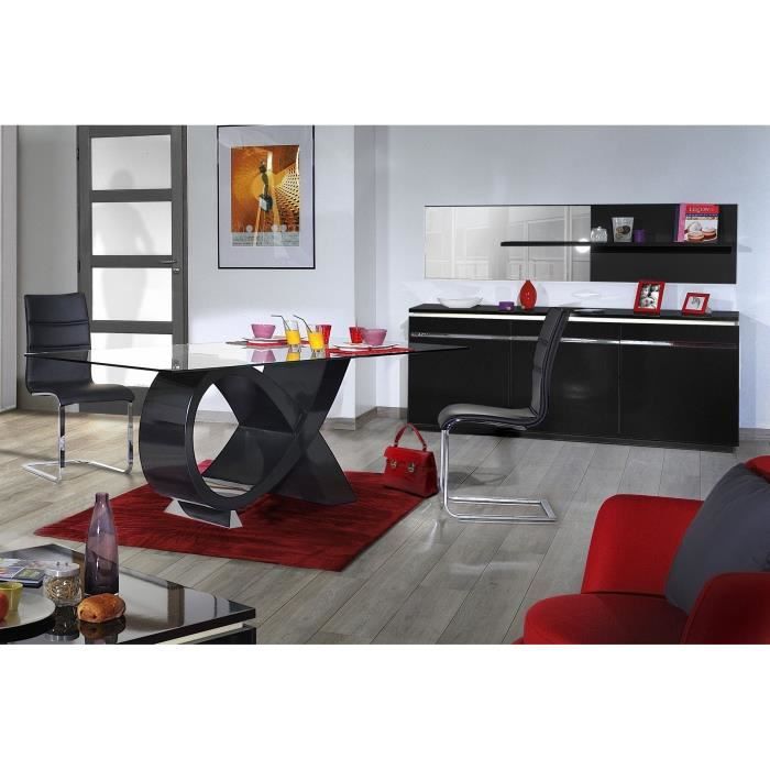 BUZZ Salle a manger complete laquée noir 6 pieces 1 table + 4 chaises + 1 bahut