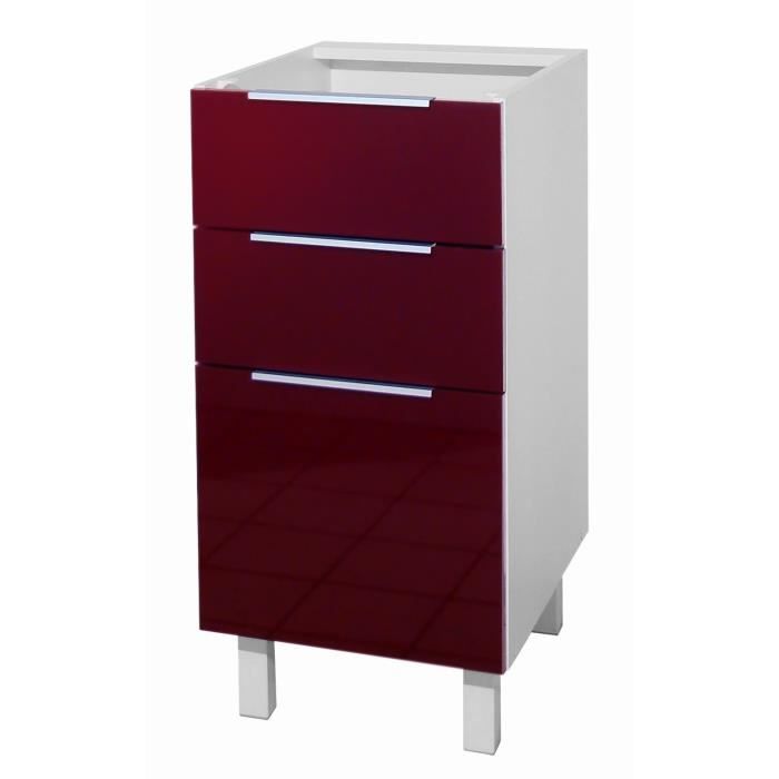 Caisson 3 tiroirs 40 cm Bordeaux Haute Brillance
