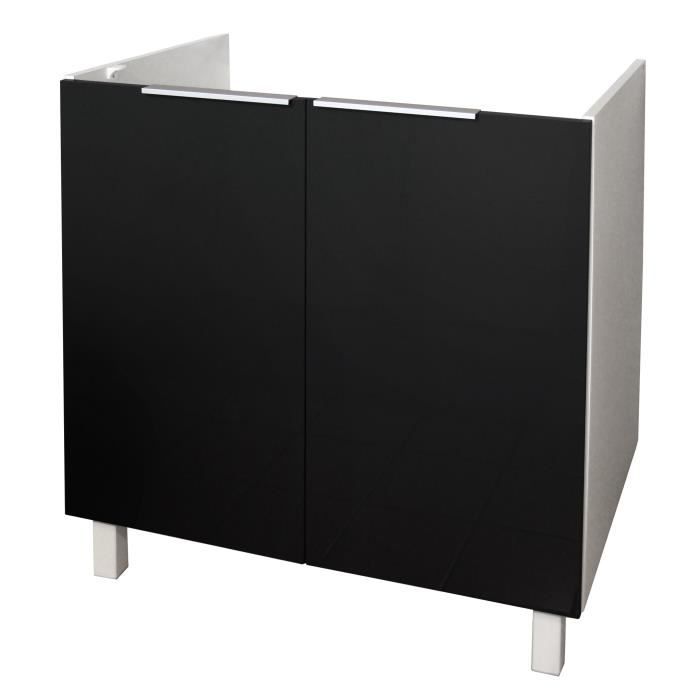 • Caisson Evier bas 80 cm Noir Haute brillance