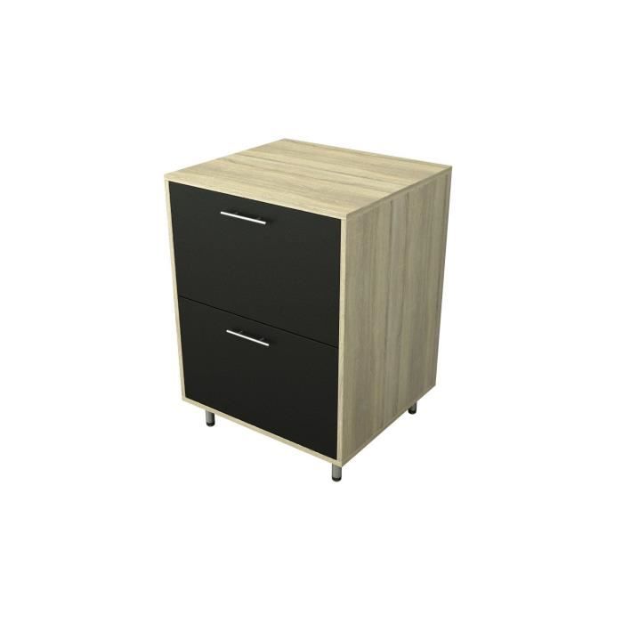 Caisson Casserolier 2 Tiroirs CANDY coloris NOIR MAT - Corps Bois CHENE SONOMA 60cm- Structure sur panneaux de particules 16mm - Poignées "RELING" inox brillant - Plan de travail en panneaux de particules 25mm - Fabrication Européenne - Garantie 2ans