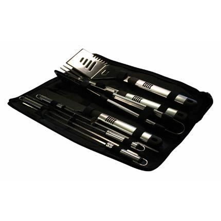 8 accessoires inox et bi-matiere - Set de 8 pieces en étui noir souple.