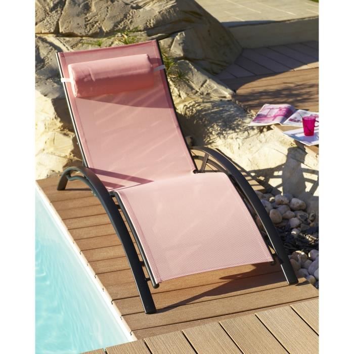 • Chaise longue aluminium textilene rose
