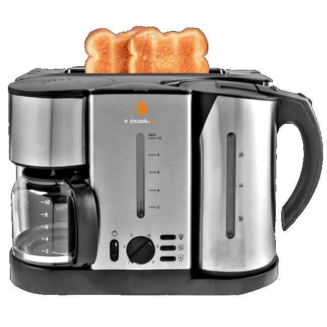 Combiné petit-déjeuner 3 en 1 - Cafetiere a filtre 1.2 L - Théiere 1.5 L - Grille pain 2 toasts - Fonction décongélation - Arret automatique - Puissance : 3000 W