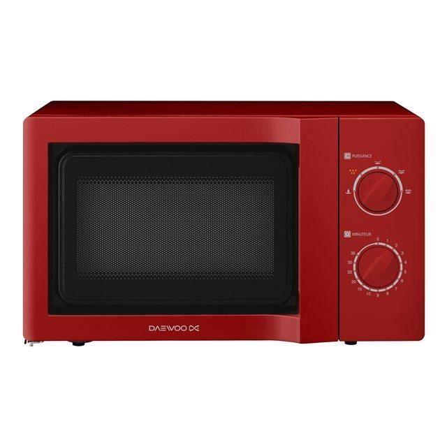 Micro-ondes monofonction - 20L - 800W - 5 niveaux de puissance dont décongélation - Systeme de réflexion concave - Minuteur 35 minutes - Arret automatique - Plateau tournant verre 25.5 cm - Coloris rouge -