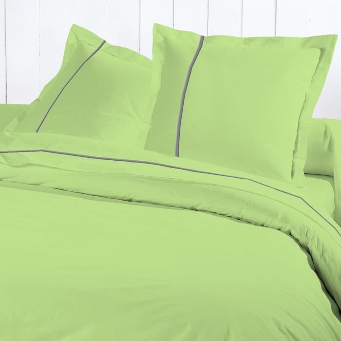DAVID OLIVIER Housse Couette 220x240 Percale VERT ANIS 100% Coton 80 Fils Tissage serré