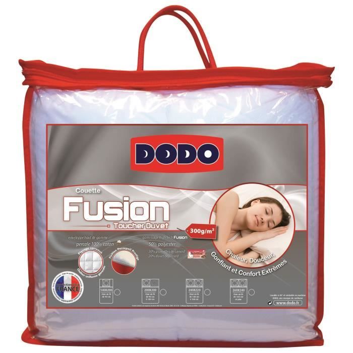 DODO Couette FUSION 220x240cm - Enveloppe 100% Percale Coton - Garnissage 50% Polyester 30% Plumettes de canard 20% Duvet de canard - Lavage 40°C - Fabrication Française - Le mélange de fibres synthétiques, de plumettes, et de duvet font de la couette FUSION un produit d'exception.