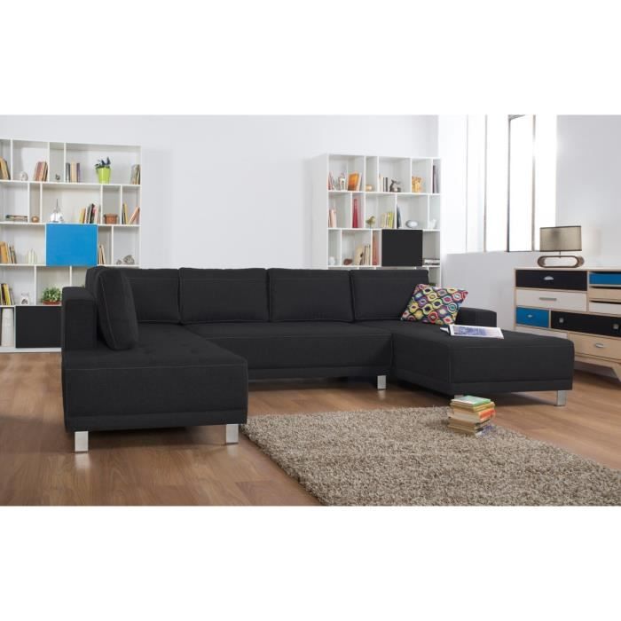 • DUVAL Canapé d'angle panoramique convertible 5 places - Tissu - 318x194x78 cm - Noir et blanc