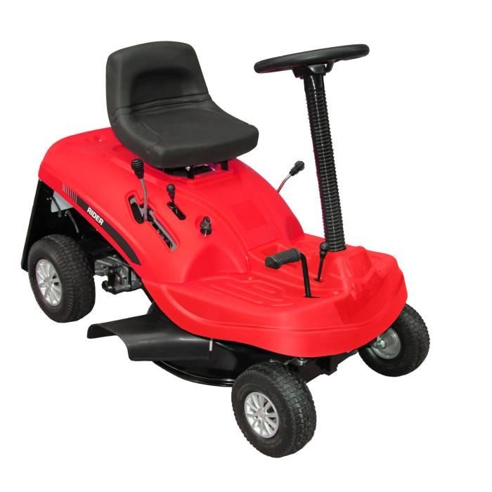 Rider Elem Garden Technic a éjection latérale - Moteur LONCIN 196cc - 4,8KW - Démarrage électrique (batterie 12V 7Ah) - Largeur de coupe : 61cm - 4 vitesses avant : 1,5/2/3/4,6km/h - 1 marche arriere : 2,3km/h - Hauteur de coupe centralisée 5 positions : 35-75mm - Diametre : avant 10'' - arriere 13'' - Réservoir d'essence 1,2L