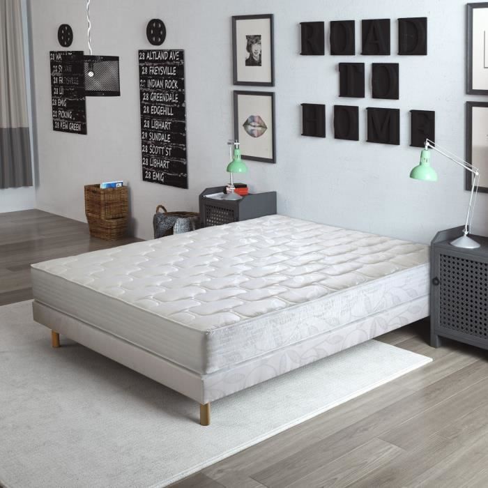Ensemble Lila matelas a ressorts ensachés - 7 zones de confort différenciées - 621 Ressorts - Coutil Jacquard - Hauteur totale 20 cm + sommier tapissier assorti, 10 lattes fixes 160x200 cm