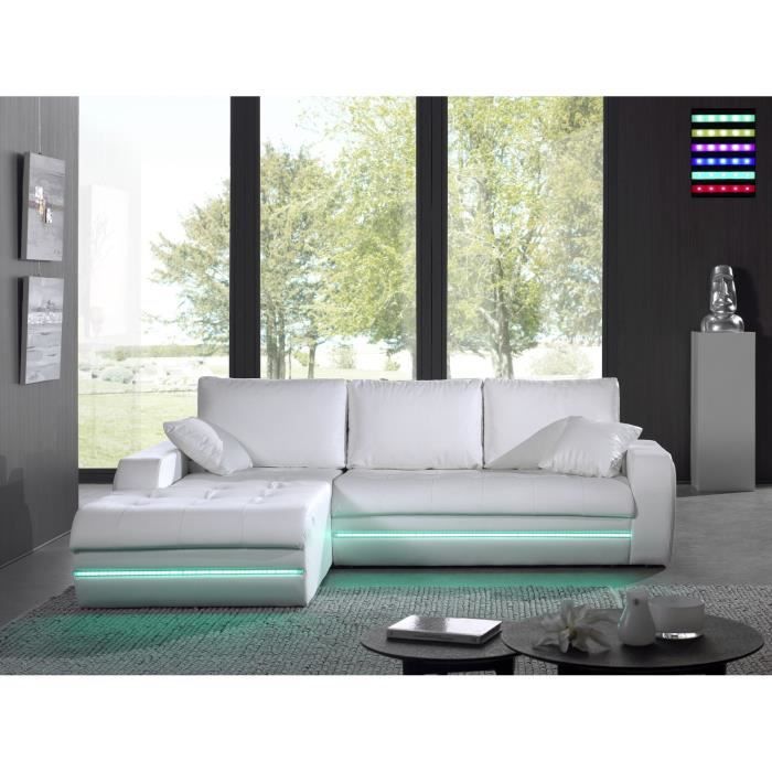 Ce canape d'angle vous enchantera par ses dimensions généreuses, la qualité de ses finitions et son design contemporain - Vous pourrez changer aisement et a souhait l'ambiance de votre interieur en choisissant une des 20 couleurs de son éclairage frontal LED grâce a la télecommande fournie - Angle gauche - 4 places - Coloris : blanc