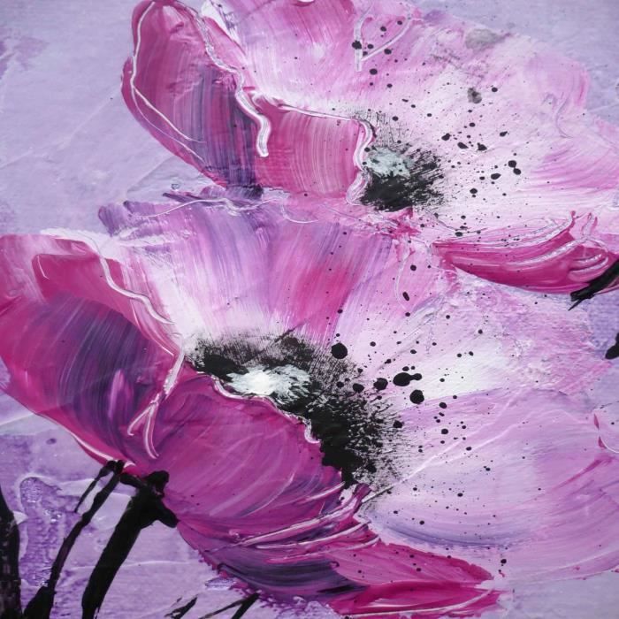 • FLEURS Tableau dĂ©co sur toile peinte 90x90