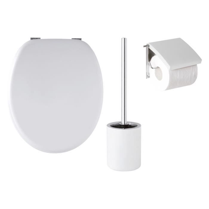 GELCO Satin 1 Blanc - Lot comprenant : Abattant moulé (Charnieres métal chromé), Dérouleur en MDF (finition mat), Pot a balai métal
