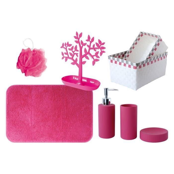 GELCO Viva - Lot comprenant : Porte savon, gobelet, distributeur (Matiere céramique ) + Tapis envers latex (Dim. 50x75 )+ Fleur de douche + Arbre a bijoux