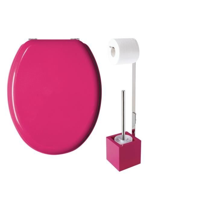 GELCO Sweet 1 Rose - Lot comprenant : Abattant finition brillante (charnieres aluminium inoxydable) + Serviteur en métal et MDF (Hauteur 55 cm)