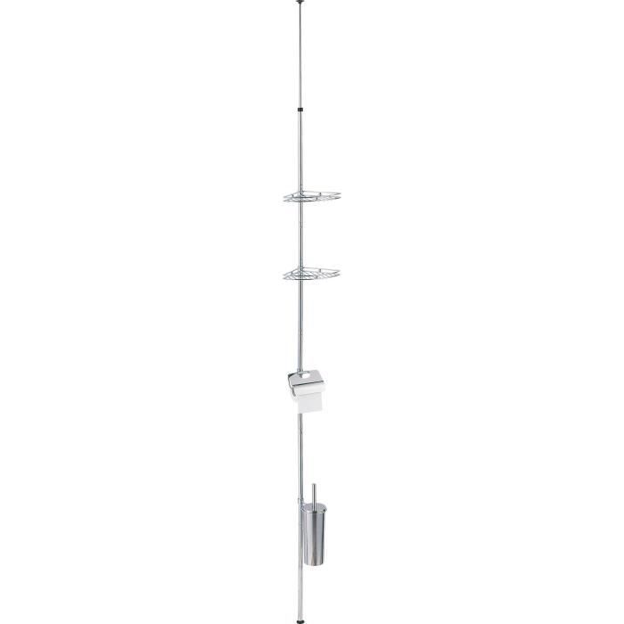 GELCO Snake Colonne extensible jusqu'a 2,50 m - comprenant : 2 tablettes, 1 dérouleur wc et pot a balai (pose sans perçage)