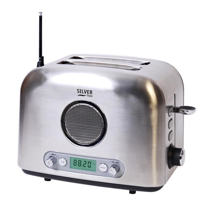 Grille pain - 2 tranches - Fonction décongélation - Arret automatique - Puissance : 800 W - Radio FM/AM - Ecran LCL - Recherche automatique des stations - 10 stations mémorisables - Prise écouteurs et égaliseur de sons