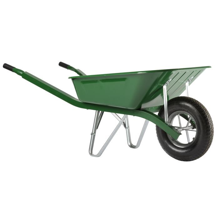 HAEMMERLIN Brouette BATI 90 - Caisse peinte verte 90L - Châssis vert cornieres soudées, pieds galvanisés avec supports caisse - Roue gonflée ø 400mm - Charge utile 200kg